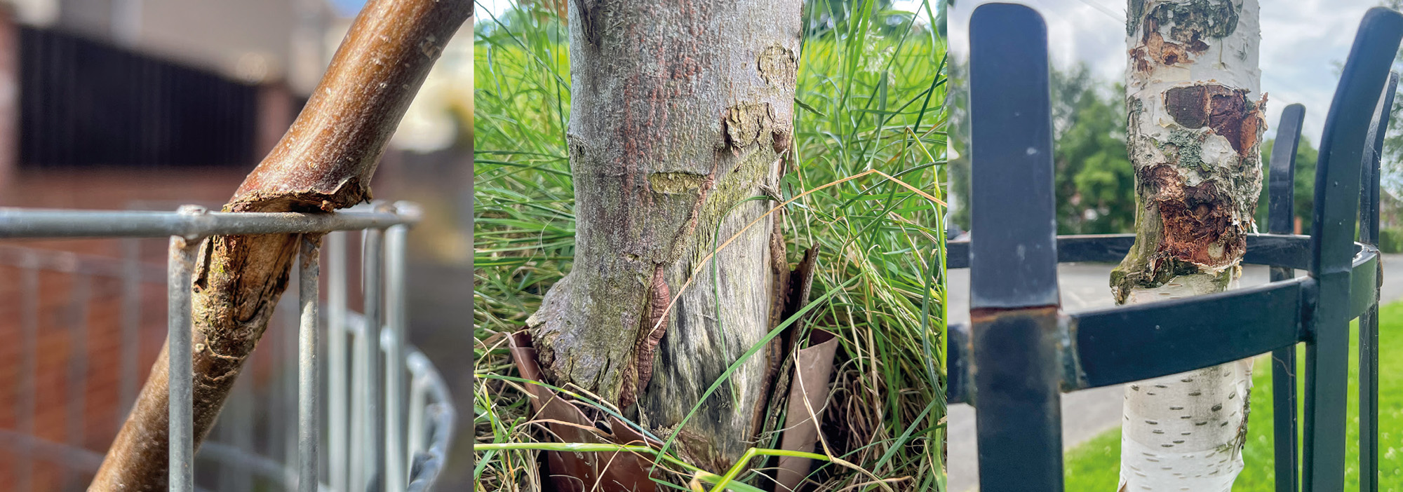 1. Strimmer damage is common in areas where grass is maintained.